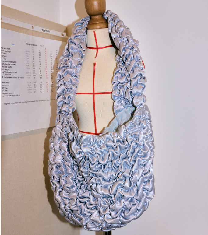Our Chaandi Bag is made from azo free dyed mashroo and hand smocked, this piece adds both color and texture to every outfit. Hand smocked and sewn, these pieces are made by the ladies at Saheli a Jodhpur based NGO.