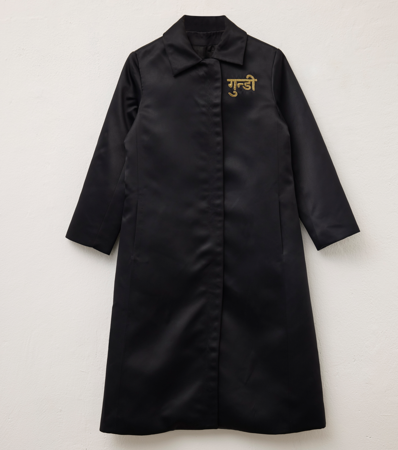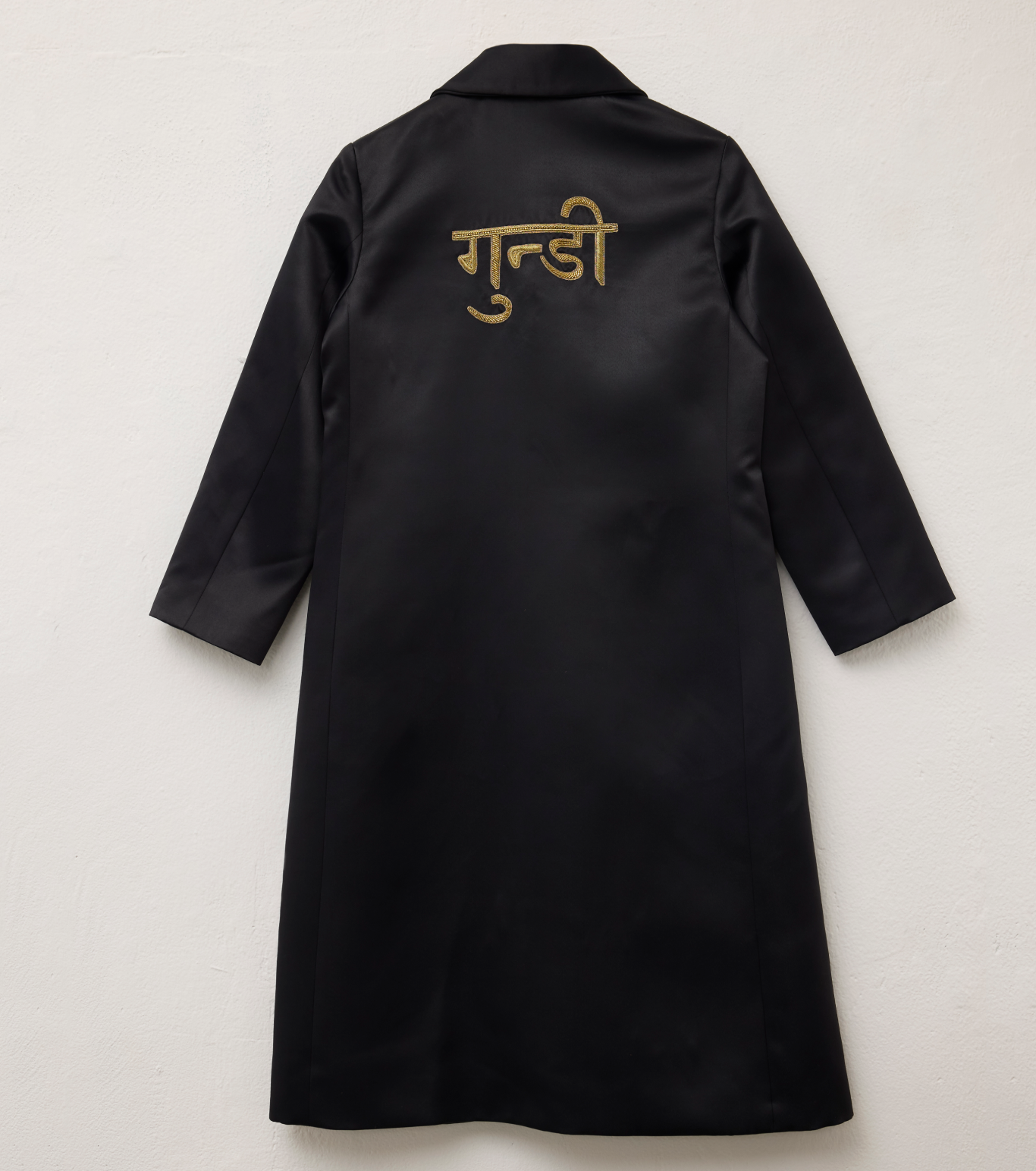 Reimagining a timeless silhouette, our duster coat is crafted from luxurious satin silk for an elegant yet effortless feel. This piece is adorned with our signature nameplate, meticulously hand-embroidered on both the front and back using aari, zari, and cut dana work. Every stitch is a testament to expert craftsmanship, transforming this flowing layer into a statement of artistry and refinement.