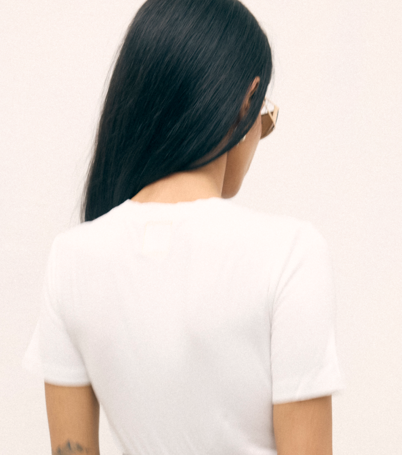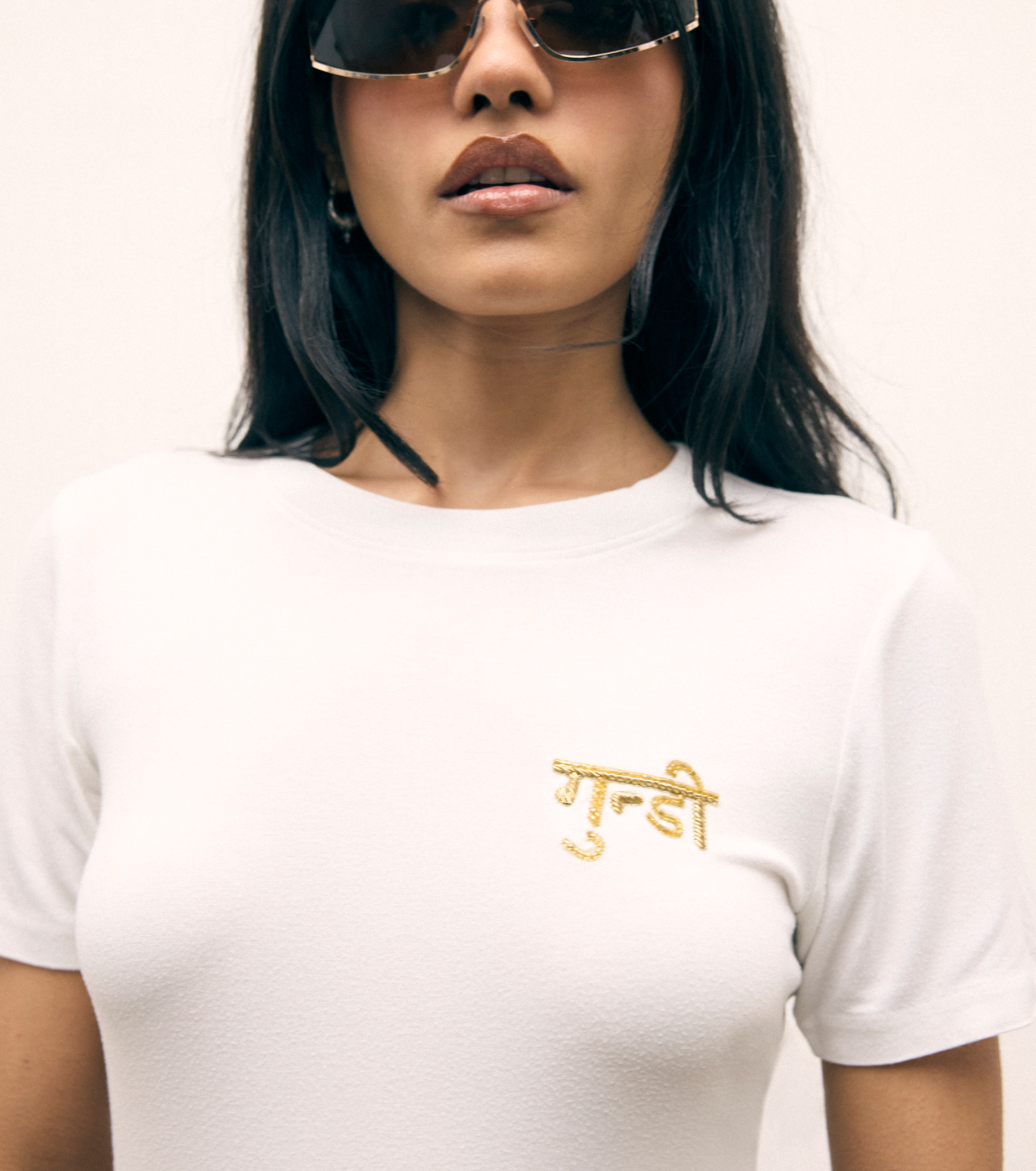 Employing time-intensive techniques for casual clothing like our t-shirt gives us more chances to support skilled artisans whose livelihoods are at risk due to diminishing demand for traditional crafts. This is your favourite white tee, elevated by a tiny hand-embroidered Gundi nameplate.