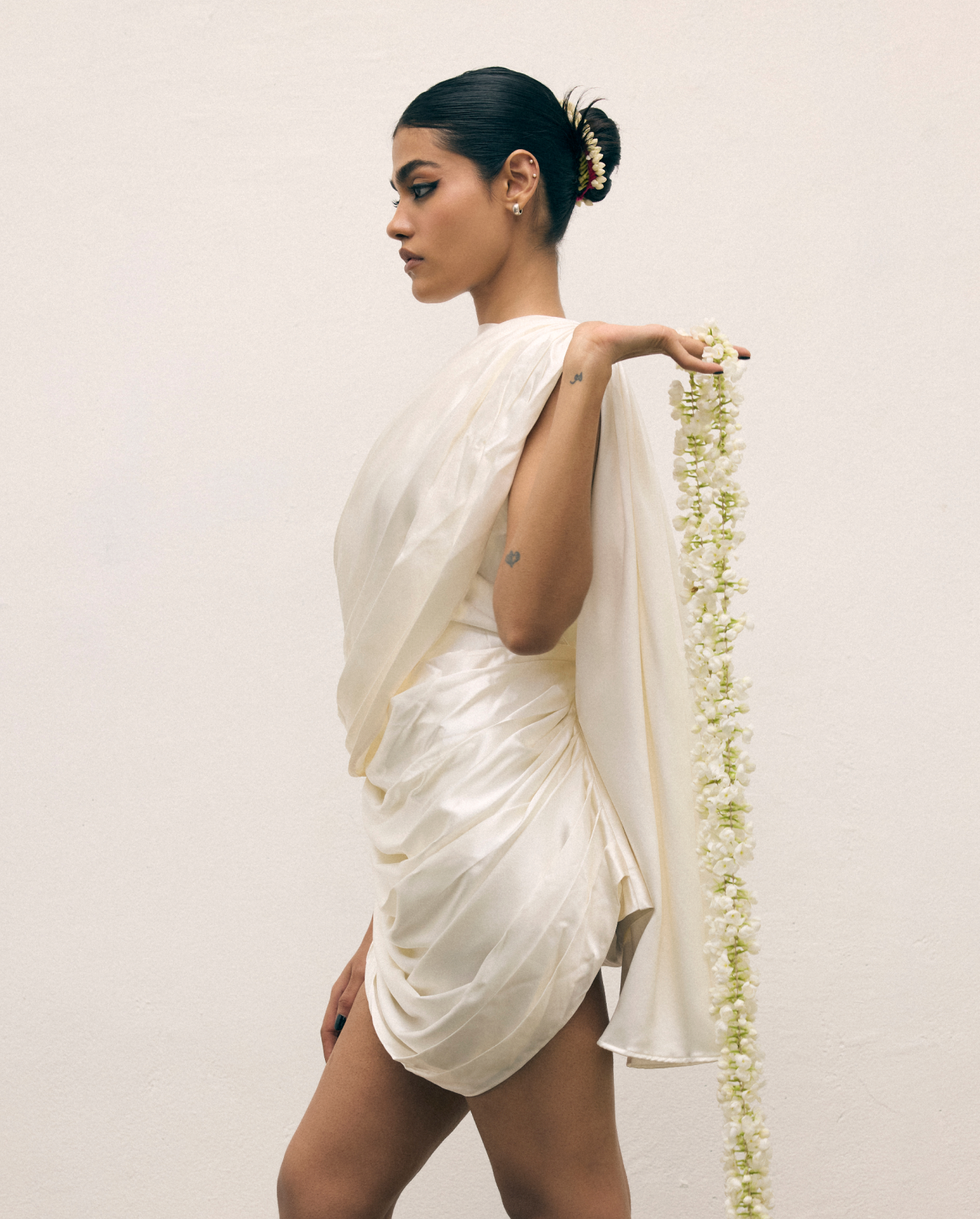 A luxurious silk version of our best-selling saree dress, designed especially for weddings. Created in response to popular demand, this reimagined design offers an opulent feel for a bride’s special day. Crafted from silk satin, its effortless draping exudes timeless elegance.